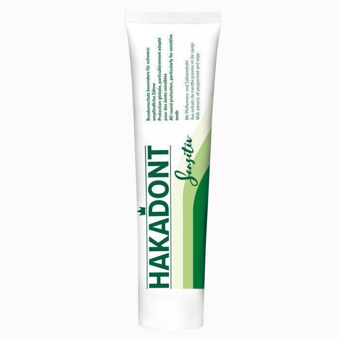 Les collets dentaires dégagés peuvent être très sensibles et provoquer des fortes douleurs. Enrichi en citrate de potassium, Hakadont Sensitiv atténue fortement ce type de douleur. Ce dentifrice est spécialement conçu pour les dents sensibles. Les extraits de menthe poivrée soulagent les inflammations. Les extraits de sauge fortifient les muqueuses.